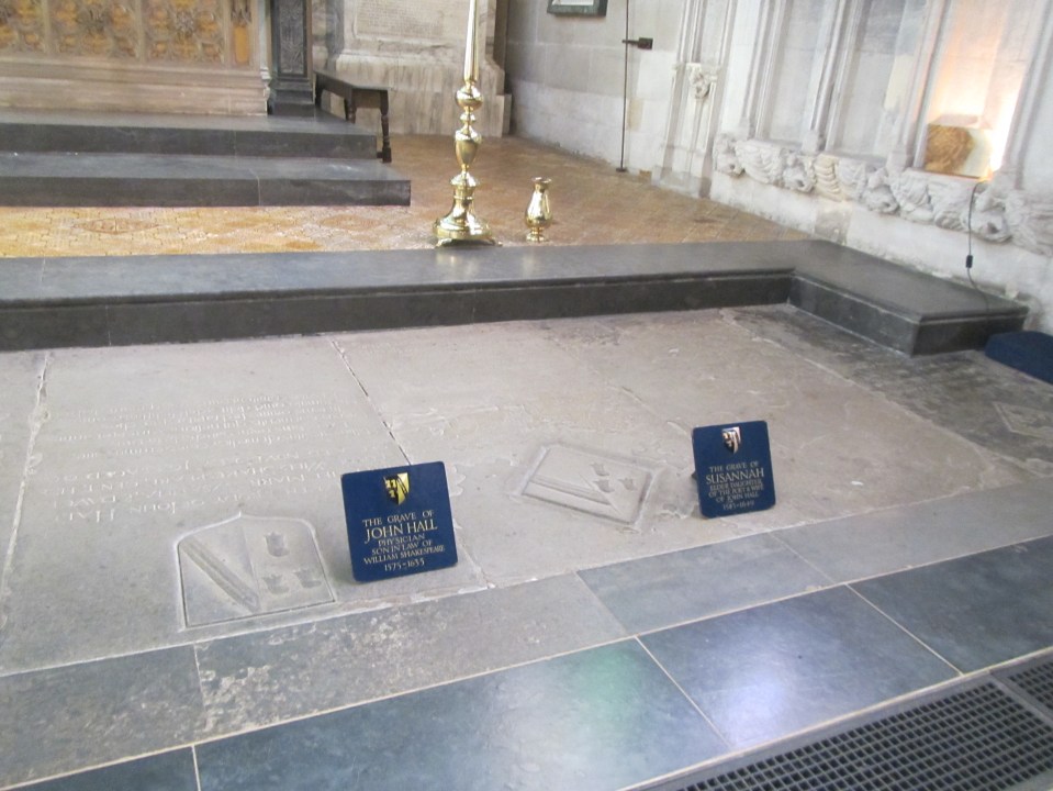 IMG_4822 ← Previous Next → The graves of John and Susanna Hall, who was the daughter of William and Anne Shakespeare.