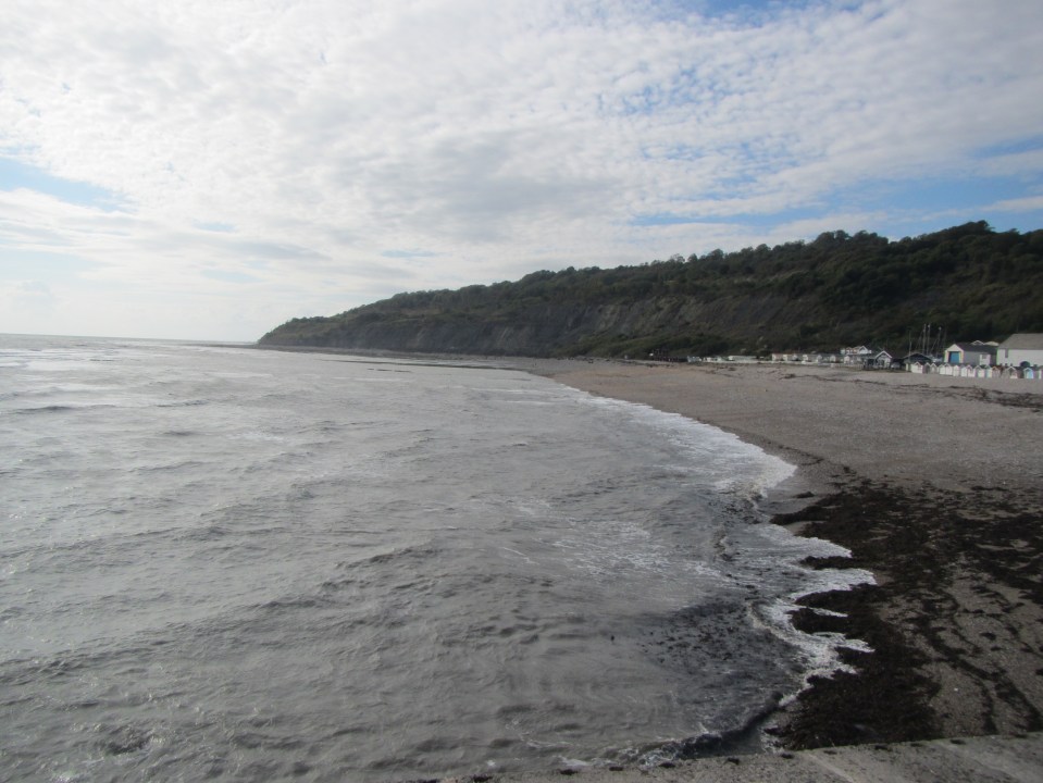 View towards Monmouth Beach and the Undercliff from the top of the Cobb.