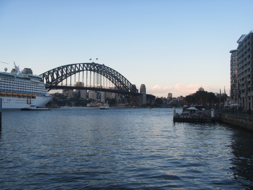 The bridge as dusk comes on.